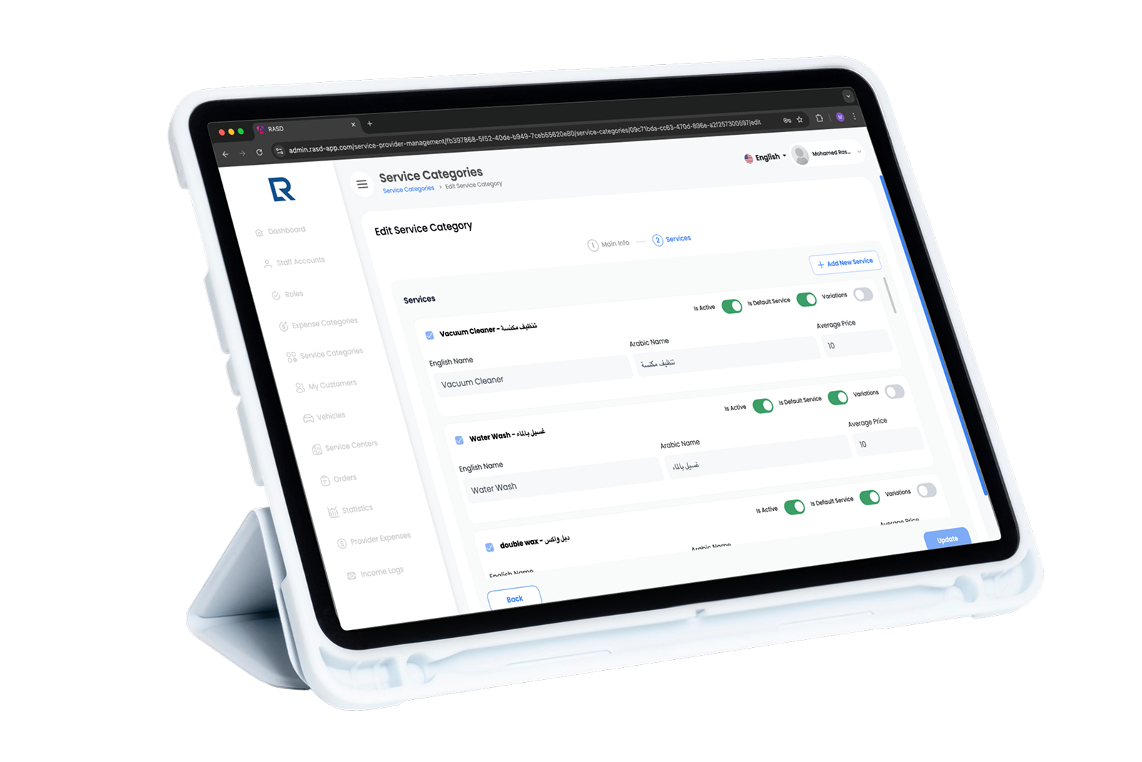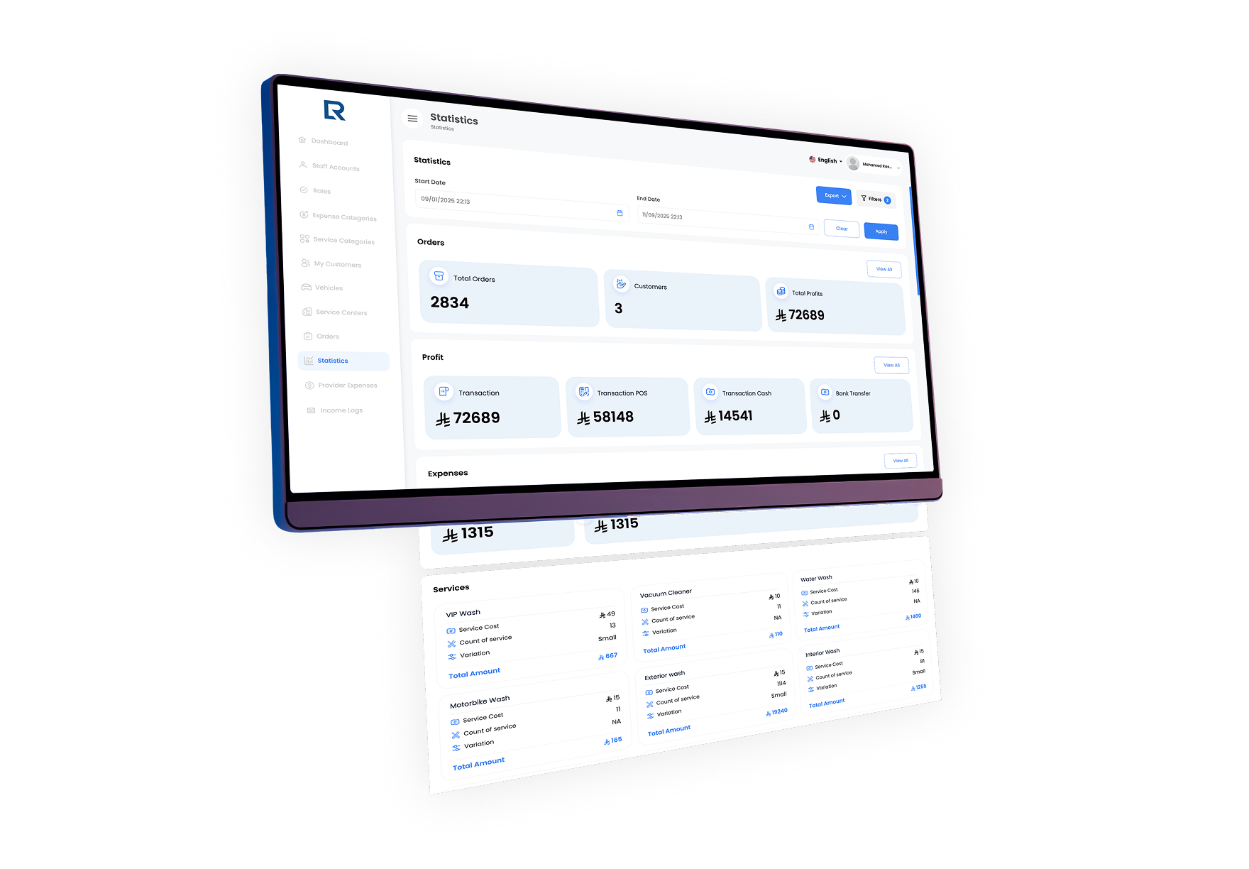 RASD is an all-in-one car wash management platform built to simplify daily operations, save time, and increase profits. It allows you to manage services, employees, branches, orders, expenses, and revenues in one organized dashboard.